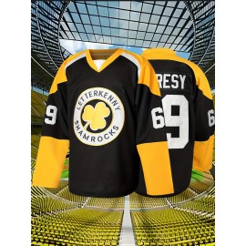 Men's #24 " Makarov " Red Ice Hockey Jersey - V-Neck, Long Sleeves, Polyester, Striped Accents - Perfect for Team Sports & Casual Wear, Machine Washable, Sizes S-3XL, Outdoor Activities| Detailing|Polyester Fabric